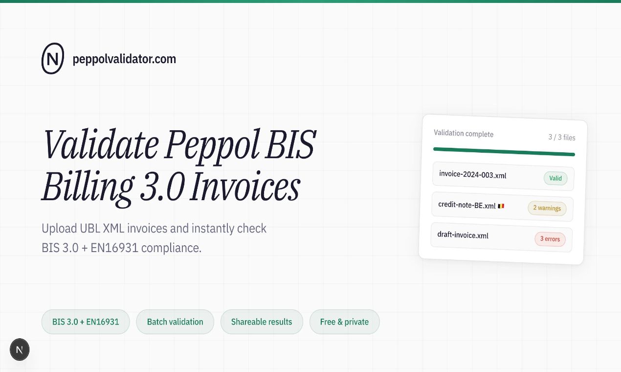 Free Peppol Validator for BIS Billing 3.0 XML Invoices