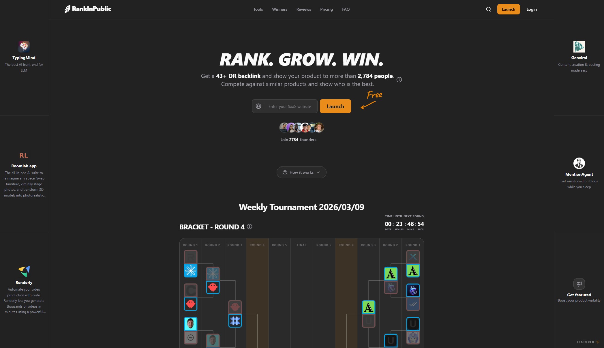 RankInPublic is an innovative platform designed specifically for SaaS (Software as a Service) entrepreneurs looking to enhance their visibility and grow their audience through competitive tournaments. In today’s digital landscape, where countless SaaS products vie for attention, RankInPublic provides a unique opportunity to stand out and gain traction.