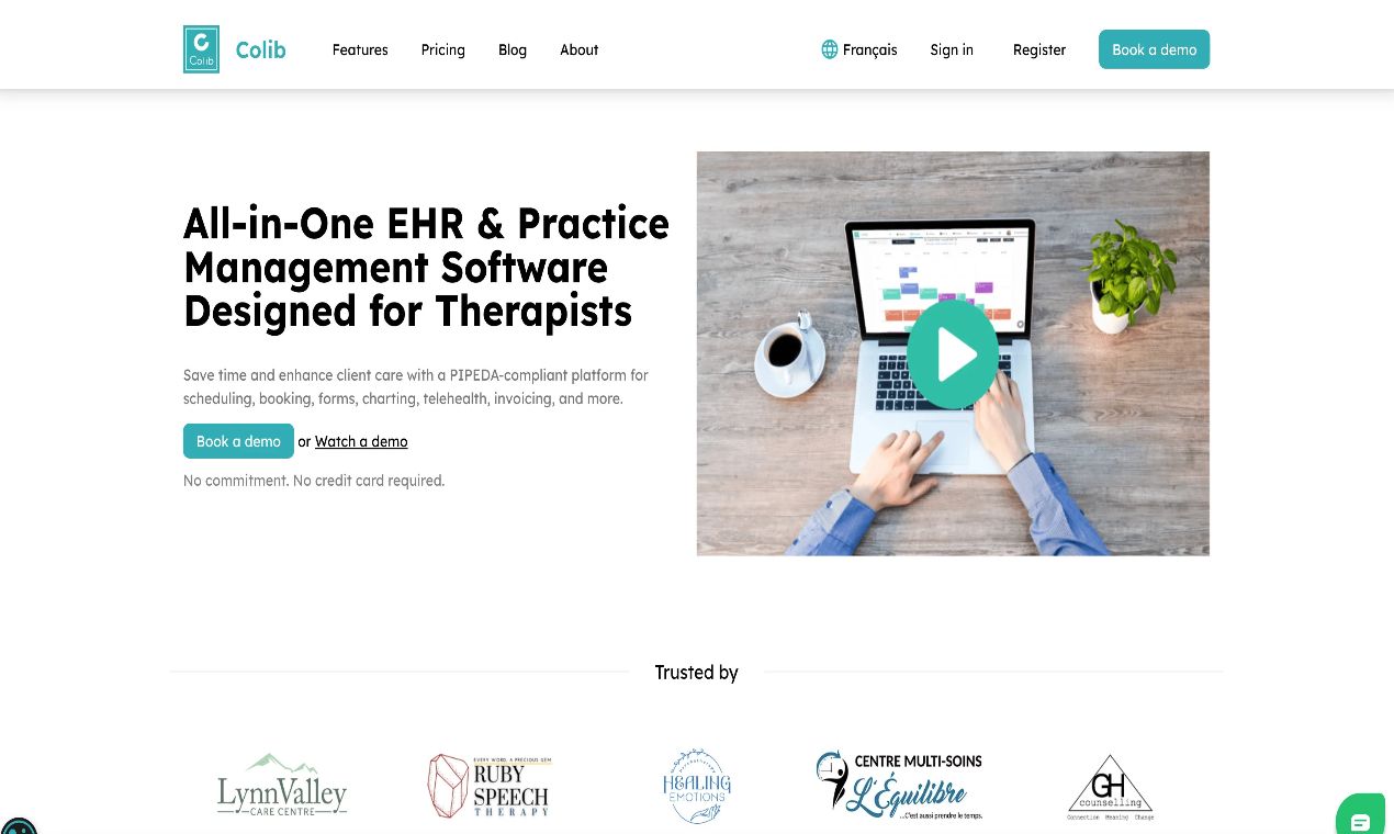 Colib is Canada's leading EHR (Electronic Health Record) and practice management software, designed for solo therapists and clinics. It streamlines scheduling, client charts, online booking, telehealth, invoicing, and more. It is PIPEDA, PHIPA, and PIPA-compliant with secure Canadian data storage.